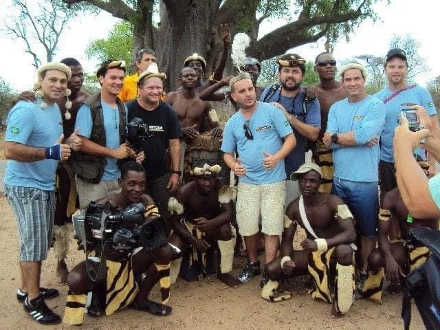 Finalmente entramos no bote totalmente destruídos sem 4 remos que perdemos no rio. Mais calmos, começamos a ouvir o Ari gritando na outra margem, a uns 300 metros de distância, desesperado pedindo resgate. Foi um momento de relaxar pois todos estávamos rindo do Ari gritando de pânico achando que iria ficar pra trás, sem o relógio e as botas E com as canelas dentro da água sobre umas pedras. Quando chegamos próximos a ele a 1ª expressão foi de alívio, de todos! Estávamos vivos! Mas tínhamos apenas 2 horas pra chegar no acampamento e tínhamos ainda 12 cachoeiras! Mas depois do que passamos na “THE MOTHER”, tudo ficou “mais fácil”! Chegamos no acampamento e nos reunimos para agradecer pelo que passamos. Conseguimos gravar os canoístas mas não gravamos o sufoco que passamos. Essas imagens estão em nossas memórias. Mas o clima ainda estava tenso. Estava chateado com irmão Clayton e nem sei porque discutimos e resolvi tirar a diferença com ele. Foi feito uma roda com os companheiros e os nativos, e começamos a brigar. A única regra era, sem socos! Conclusão. Fiz ele comer areia do rio Zambeze! 🤣🤣🤣🤣 Tensão, medo e um stress incalculável depois de 1 dia inteiro num rio nervoso. Após a nossa briga fizemos outra roda e tudo se resolveu na paz. Secamos 1 litro de wisky Jack Daniels. Foi um dia e tanto! Estávamos apenas aprendendo como conviver com o perigo num Planeta Extremo. Participaram dessa aventura @mhouteiral @claudiolcarneiro @arijr01 in memoriam (morreu no acidente da Chapecoense), @robertojuniorreal e @fabio_brandao.